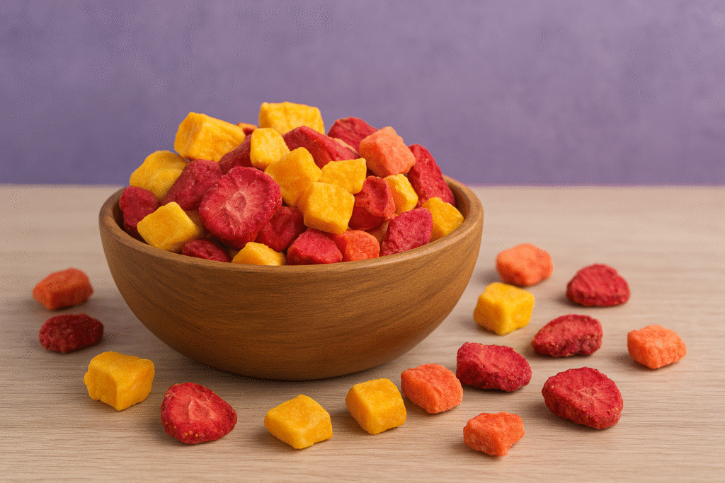 Crujientes, 100% naturales y llenos de sabor. Gracias a la liofilización, conservan sus nutrientes, color y frescura sin conservantes ni azúcares añadidos. Ligeros, nutritivos y sin culpa: el snack perfecto para llevar a todas partes.